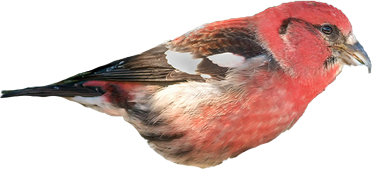 Males are rosy-red, females olive-green, both with uniquely crossed bills. These nomadic finches move unpredictably, following cone crops across the boreal