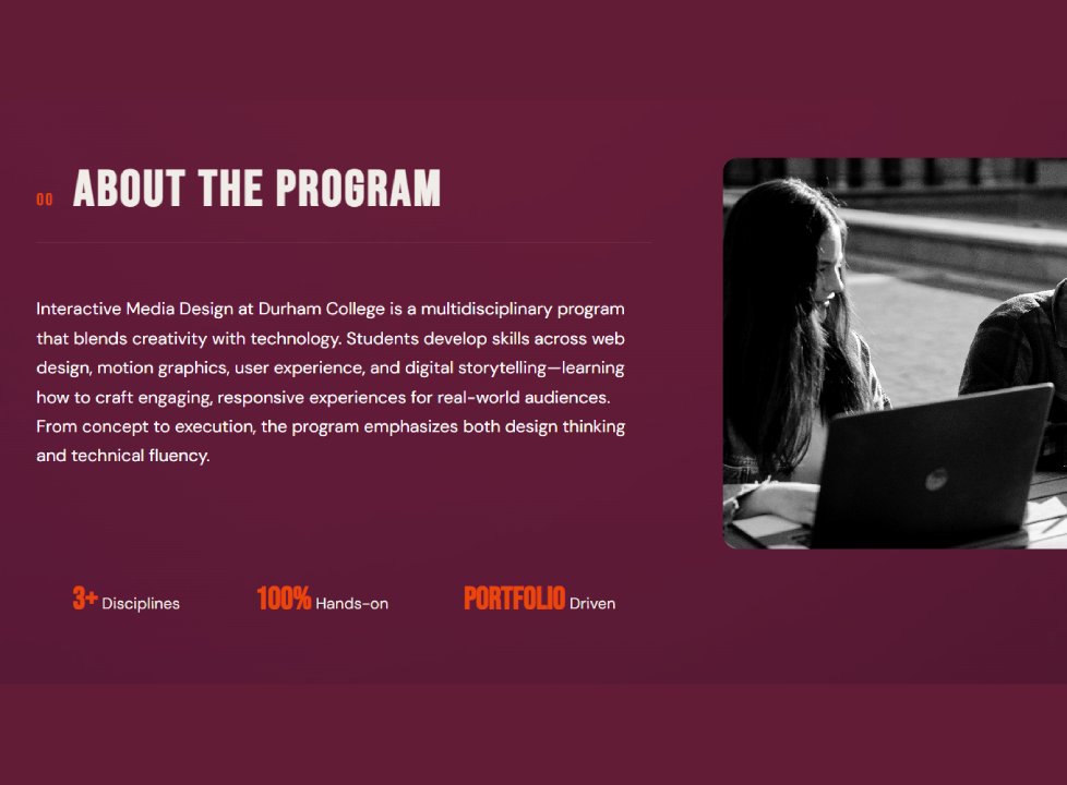 This collaborative project was developed as part of an Interactive Media Design program. It focuses on creating engaging digital experiences through teamwork, combining design, development, and content strategy into a single cohesive web solution.